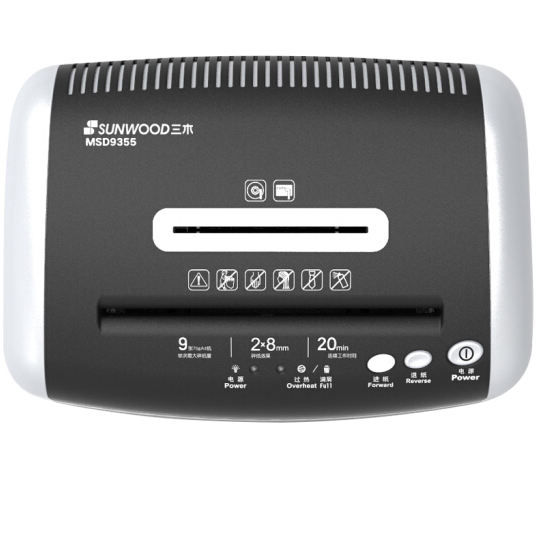 三木(SUNWOOD)5级保密办公商用碎纸机 (单次9张 持续20分钟 17.5L 可碎纸,光盘,卡,订书针) MSD9355