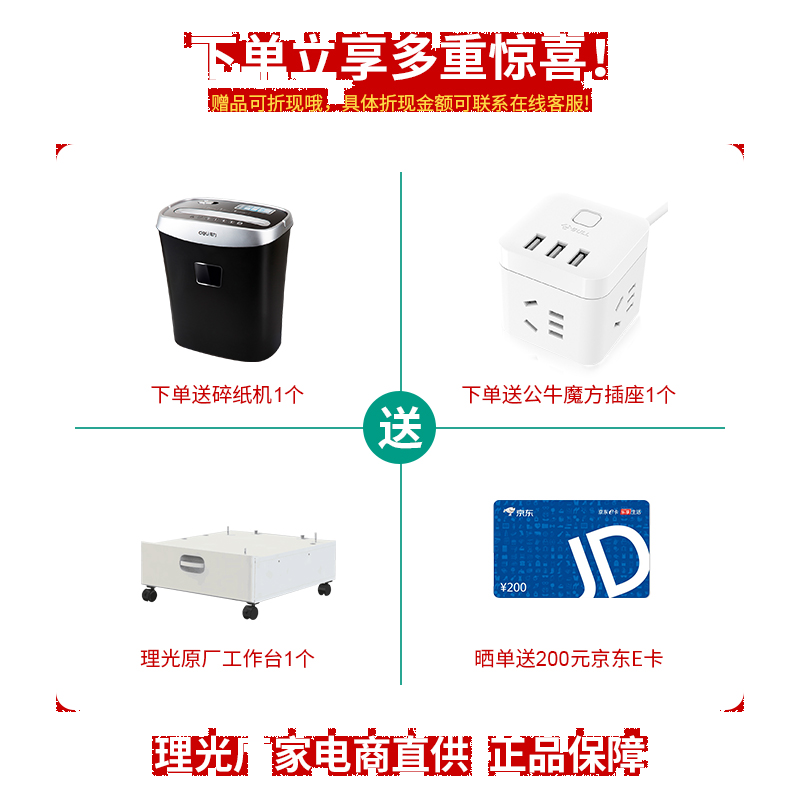 首页/ 理光(Ricoh)MC2000ew复印机一体机A3彩色激光商务办公复合机(自动双面复印网络打印扫描) 2000ew标配(自动双面输稿器/单纸盒)/