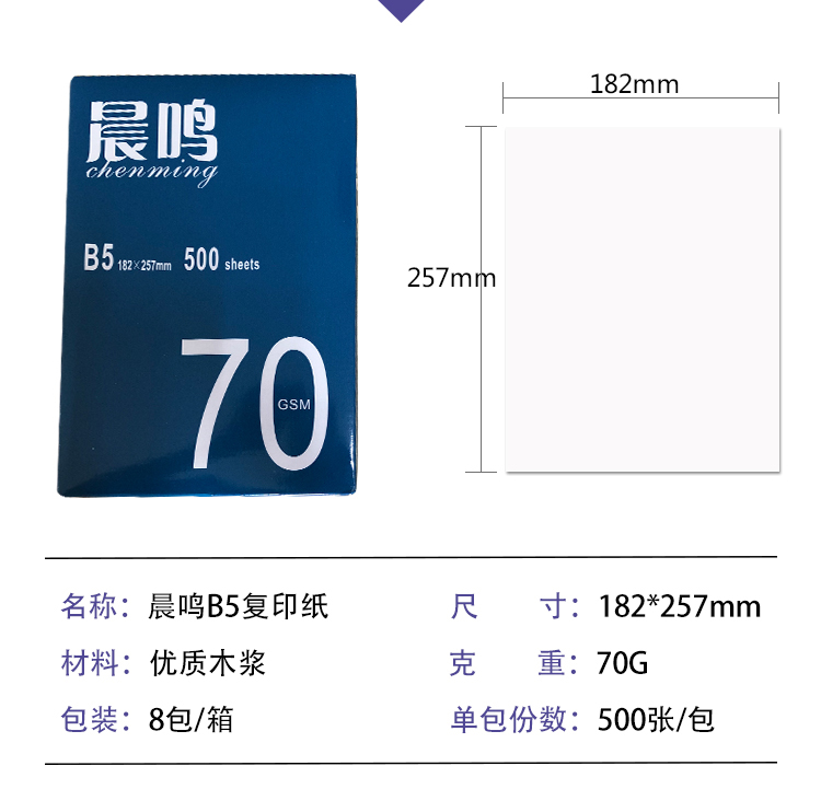 晨鸣复印纸 B5/80g打印纸木浆纸办公用品白纸 晨鸣80克 单包装