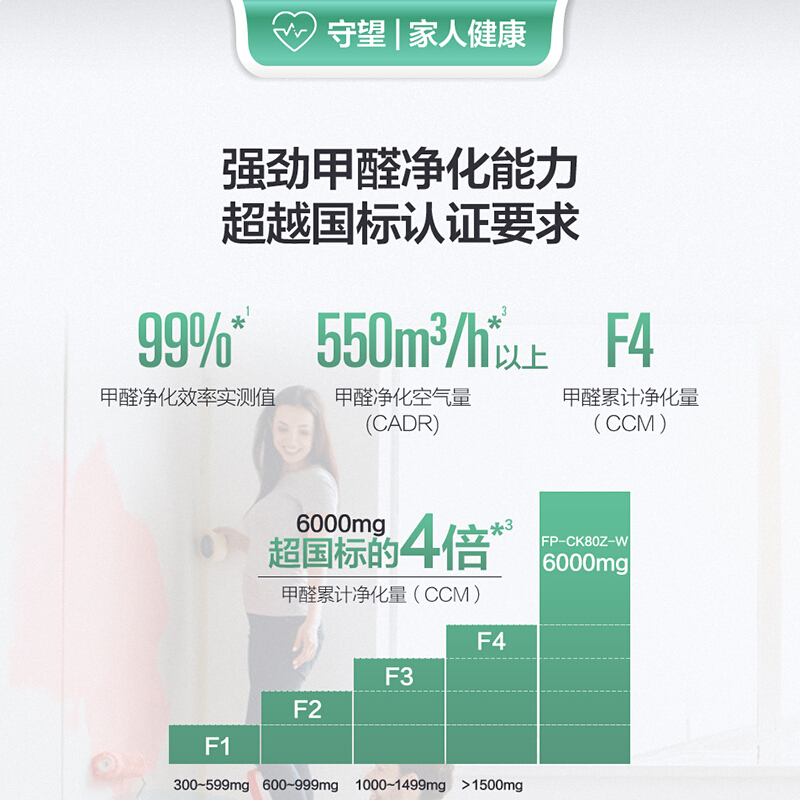 夏普(Sharp)空气净化器家用快速除甲醛PM2.5TVOC数显FP-CK80Z-W 珍珠白