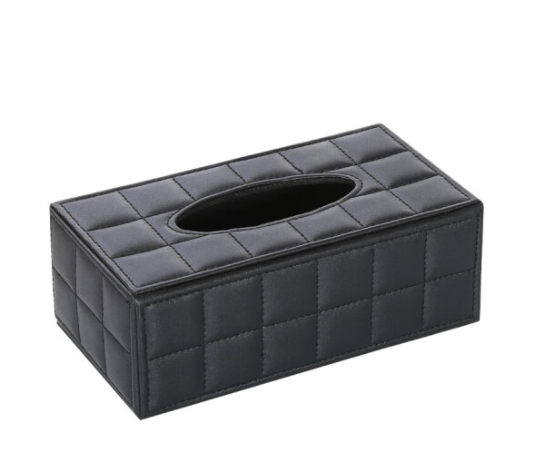 凡高(VENGO) 纸巾盒 AS-01001 酒店抽纸盒皮质商用仿木纹盒黑色小号17*12*8.5