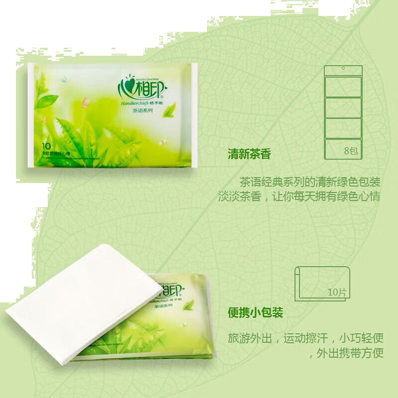 首页/ 心相印茶语手帕纸巾钱包餐巾纸薄款卫生纸皮夹式便携面巾纸 一条8包W910/