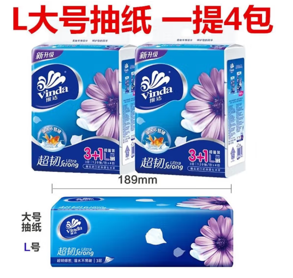 首页/ 维达 抽纸 L码大号纸巾3层加厚大尺寸卫生纸餐巾纸软抽48包/