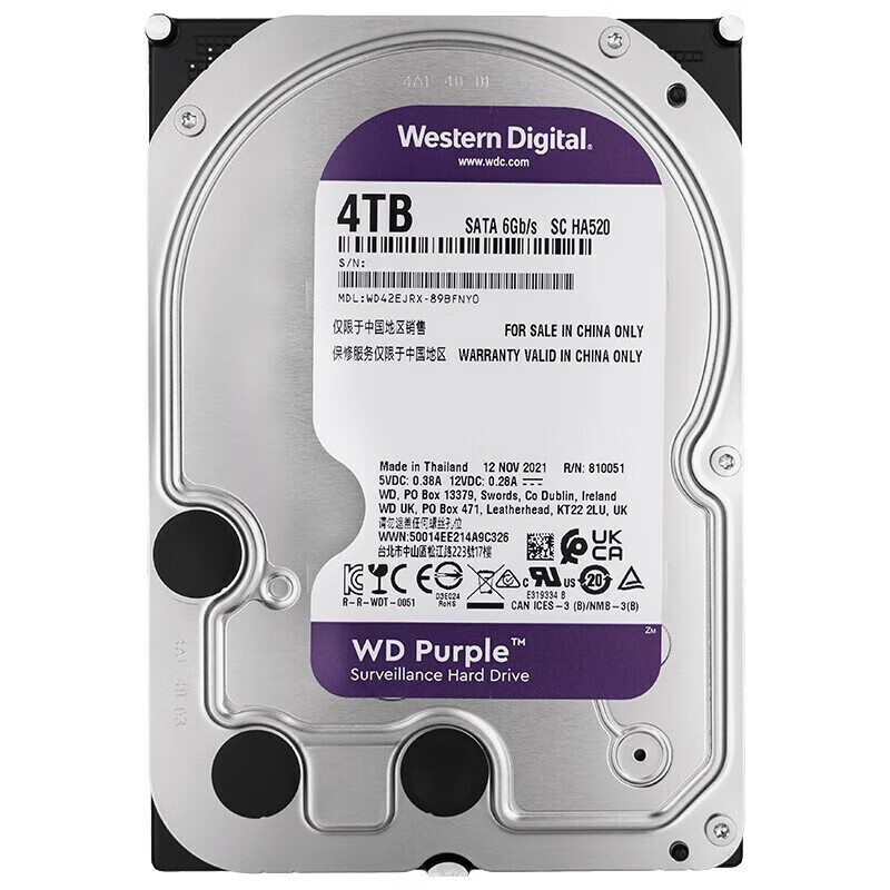 西数 4t 紫盘SATA6Gb/s 256M垂直CMR监控机械硬盘