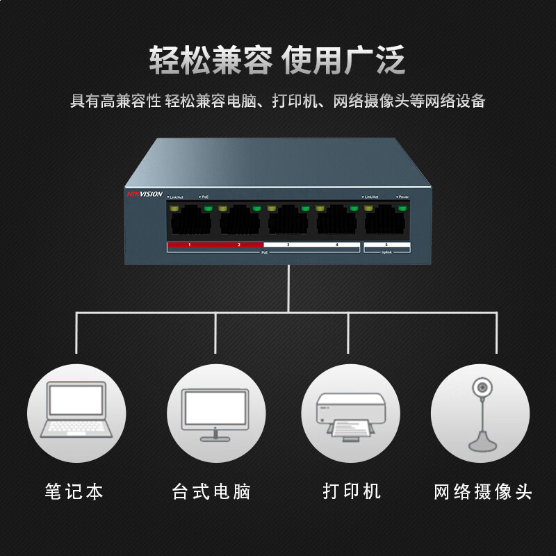 首页/ 海康威视 POE交换机5口百兆监控交换机金属外壳散热非网管延长网线传输DS-3E0105P-E/M/