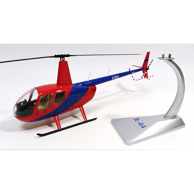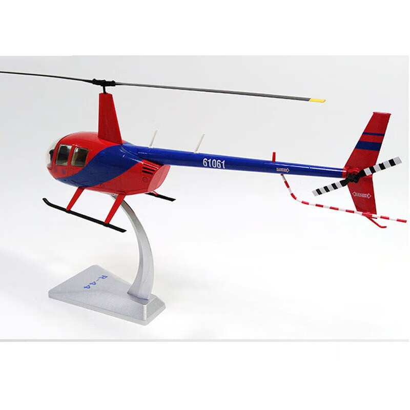 良青罗宾逊R-44雷鸟直升机 仿真合金摆件退伍收藏静态模型1:32蓝红款