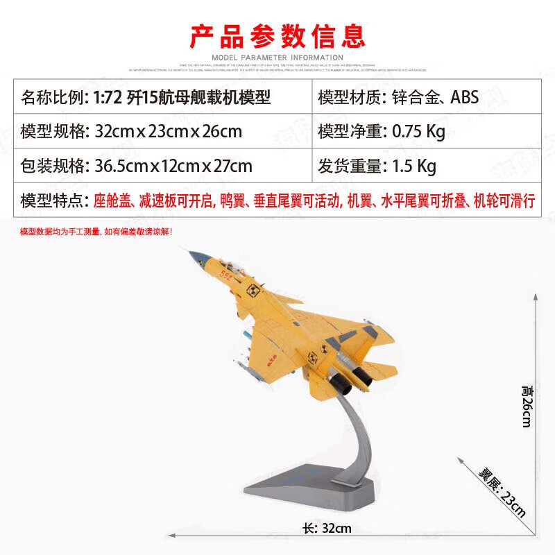良青歼-15飞机模型合金仿真国防教育科普退伍纪念礼品1:72黄色