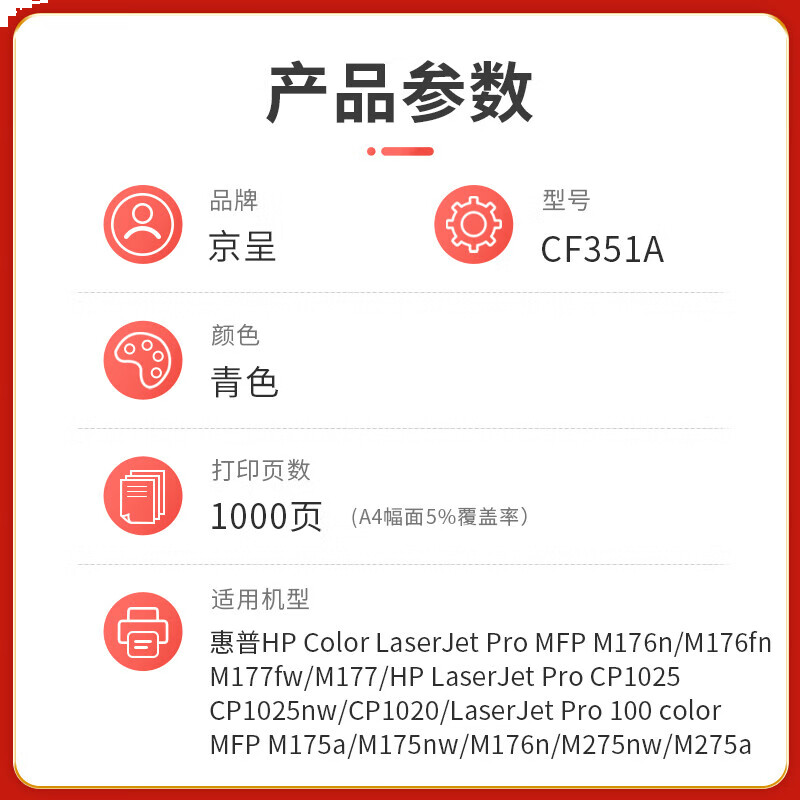 首页/ 京呈PLUS版 CF351A 墨盒 青色大容量1000页/