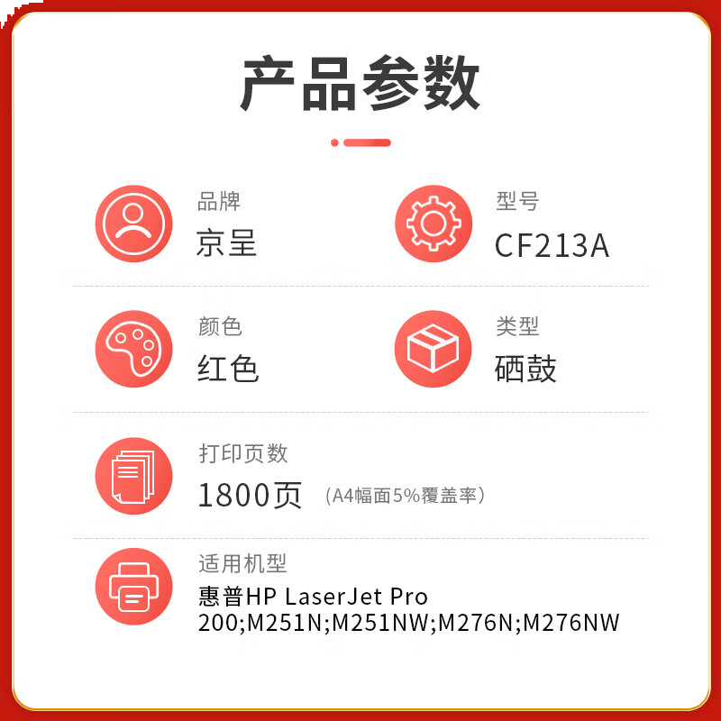 首页/ 京呈PLUS版 CF213A 硒鼓 红色易加粉硒鼓/