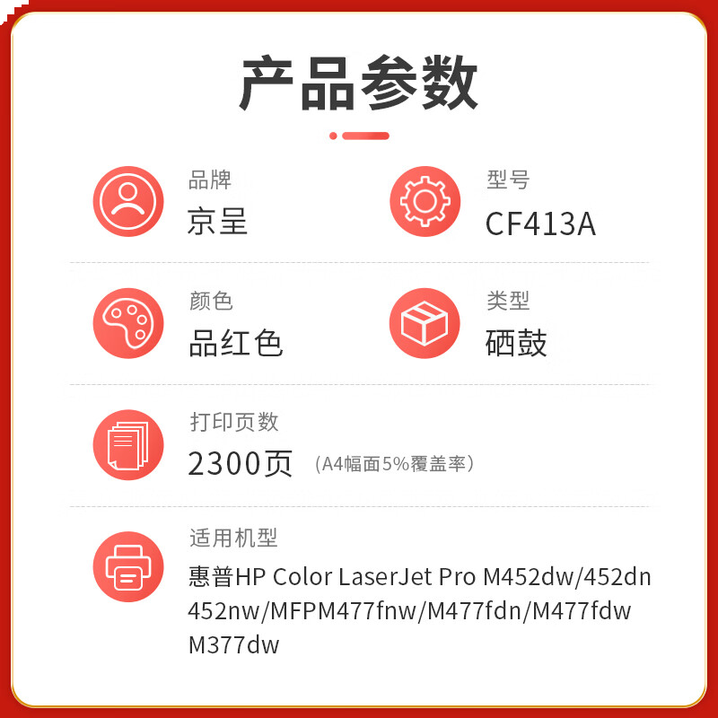 首页/ 京呈PLUS版 CF413A 品红色易加粉硒鼓/