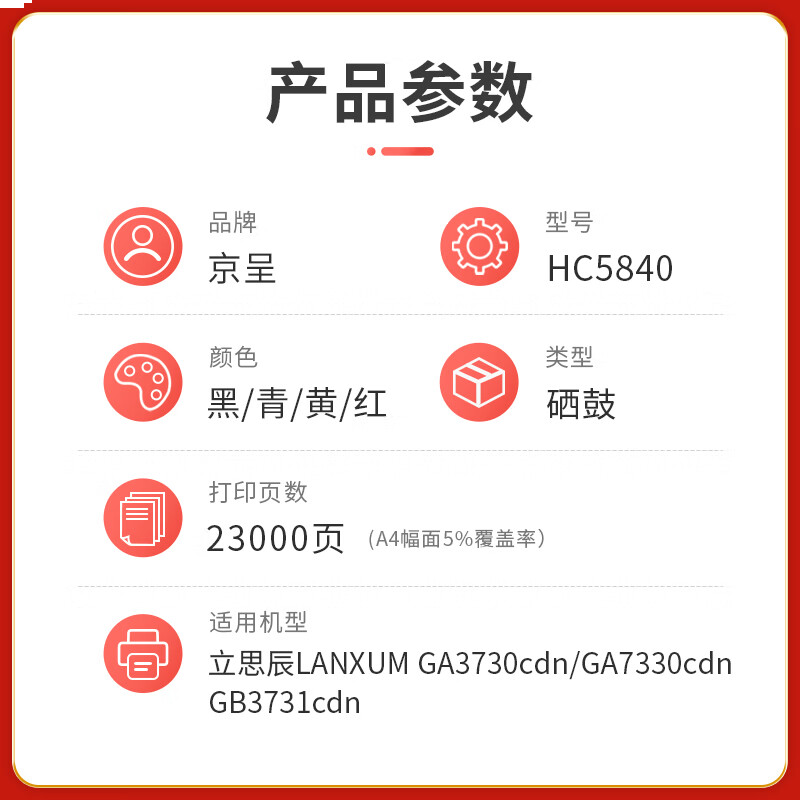 首页/ 京呈PLUS版 HC5840 硒鼓 四色套装【23000页】/