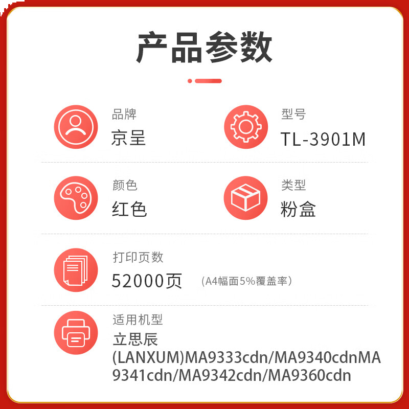 首页/ 京呈PLUS版 TL-3901M 墨盒 大容量红色粉盒/