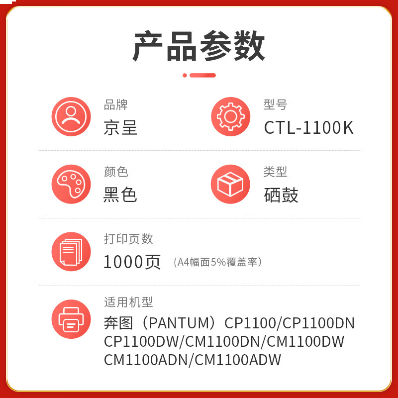 京呈PLUS版 CTL-1100K 硒鼓 标准黑色硒鼓