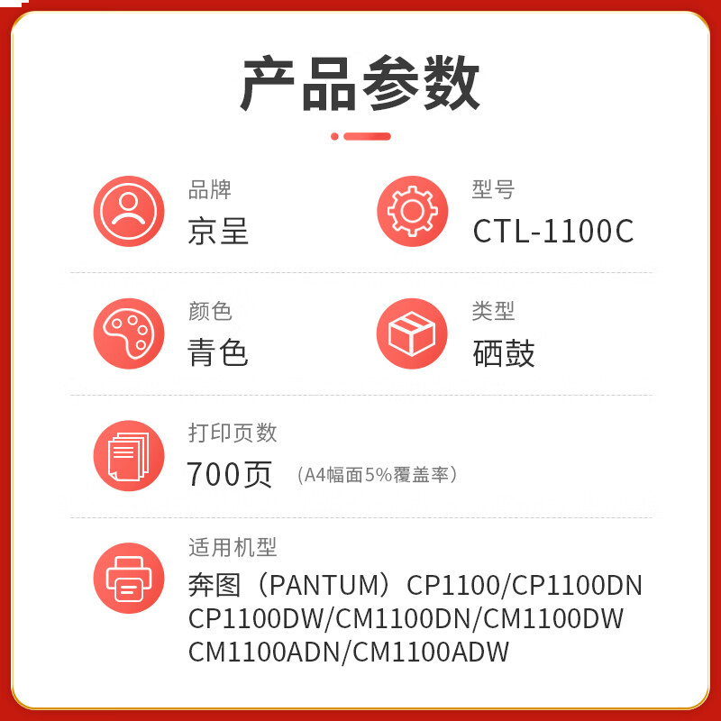 首页/ 京呈PLUS版 CTL-1100C 硒鼓 【700页】CTL-1100C标准青色硒鼓/