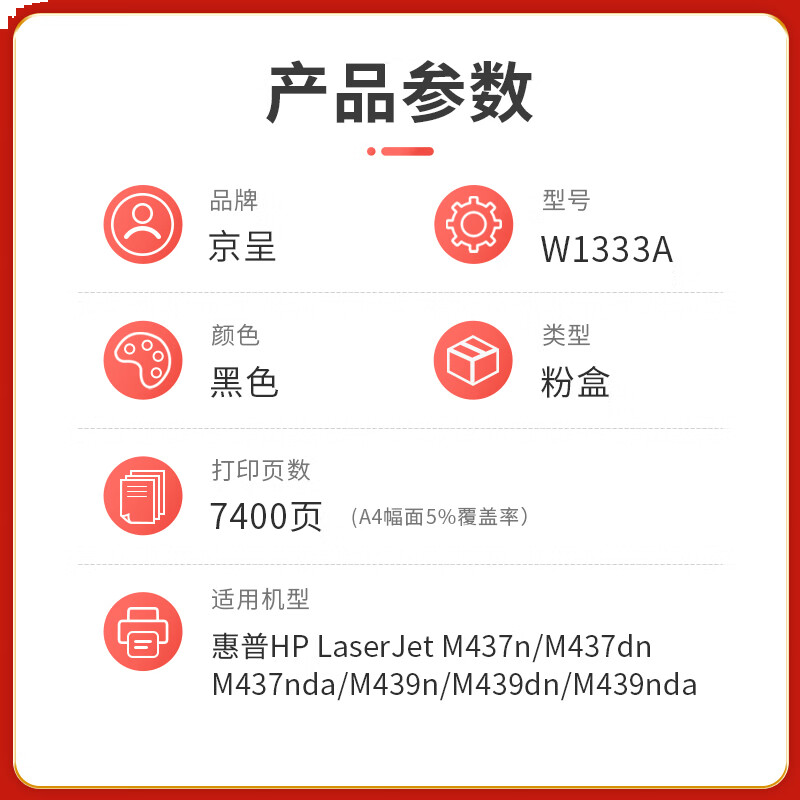 首页/ 京呈PLUS版W1333A 墨盒 黑色粉盒 7400页/