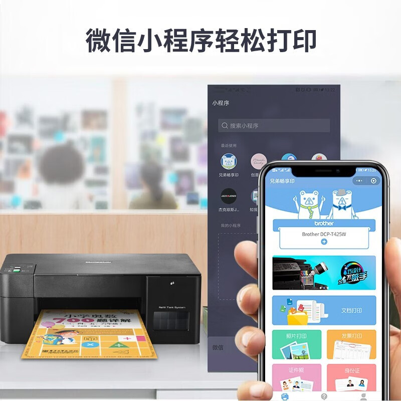 兄弟(brother)DCP-T425W 多功能一体机 彩色喷墨多功能打印机内置墨仓无线连接远程打印
