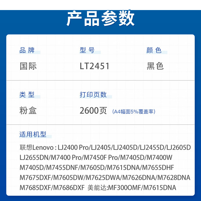 首页/ 国际 LT2451 墨盒 黑色 标准版易加粉粉盒2600页/