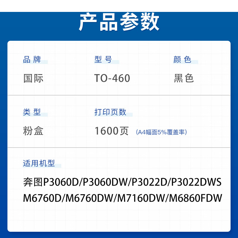 国际 TO-460 墨盒 标准装带芯片粉盒易加粉-1600页