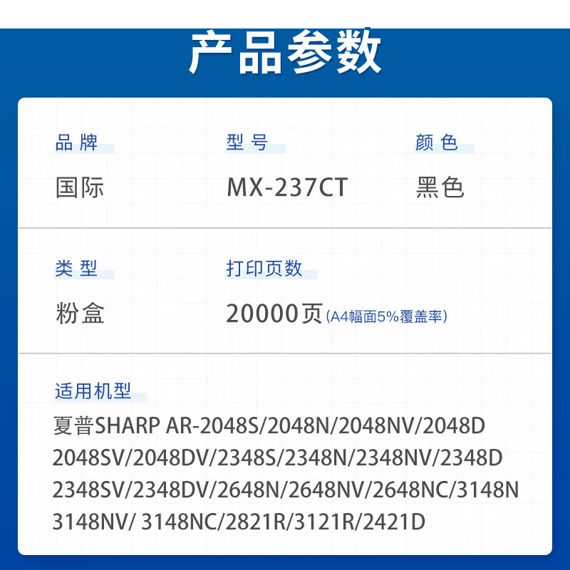 国际 MX-237CT 适用夏普2048S墨盒2348SV粉盒3148N硒鼓2421碳粉盒2221R