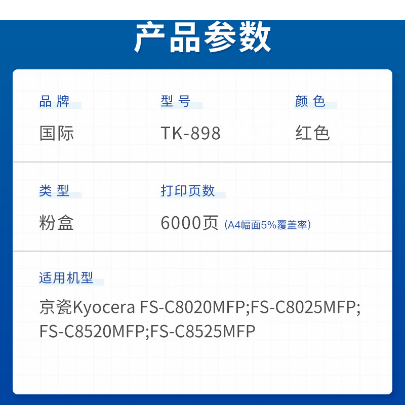 首页/ 国际 TK898 墨盒 大容量墨粉盒 红色 6000页/