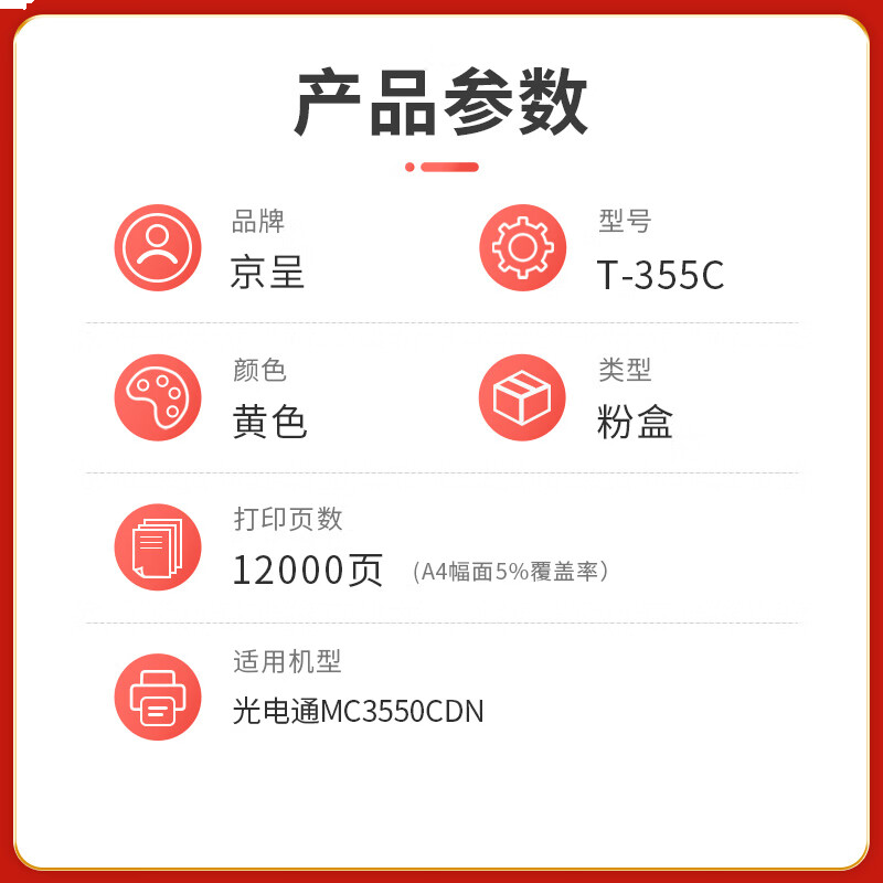 首页/ 京呈PLUS版T-355C 硒鼓 黄色大容量墨粉盒 【12000页】/