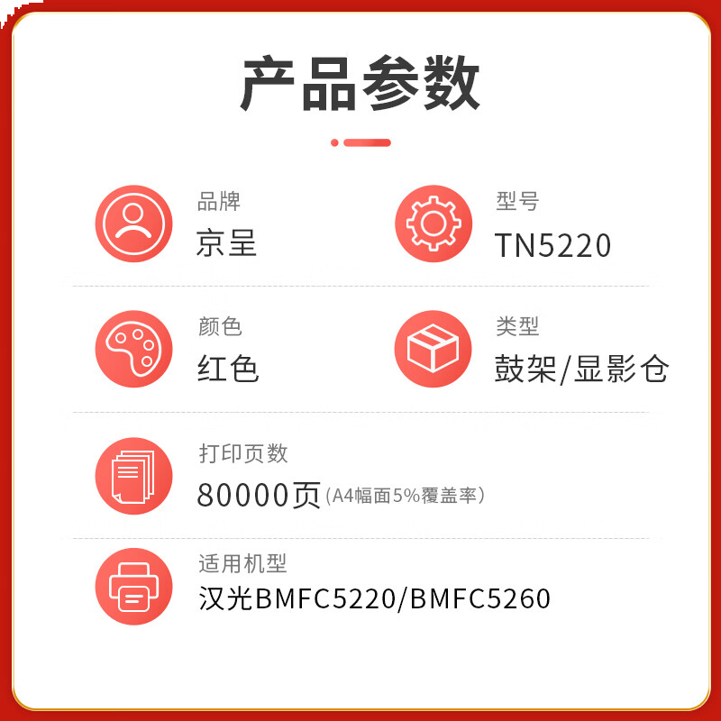 首页/ 京呈PLUS版 TN5220 硒鼓 红色套鼓(感光鼓+显影仓)/