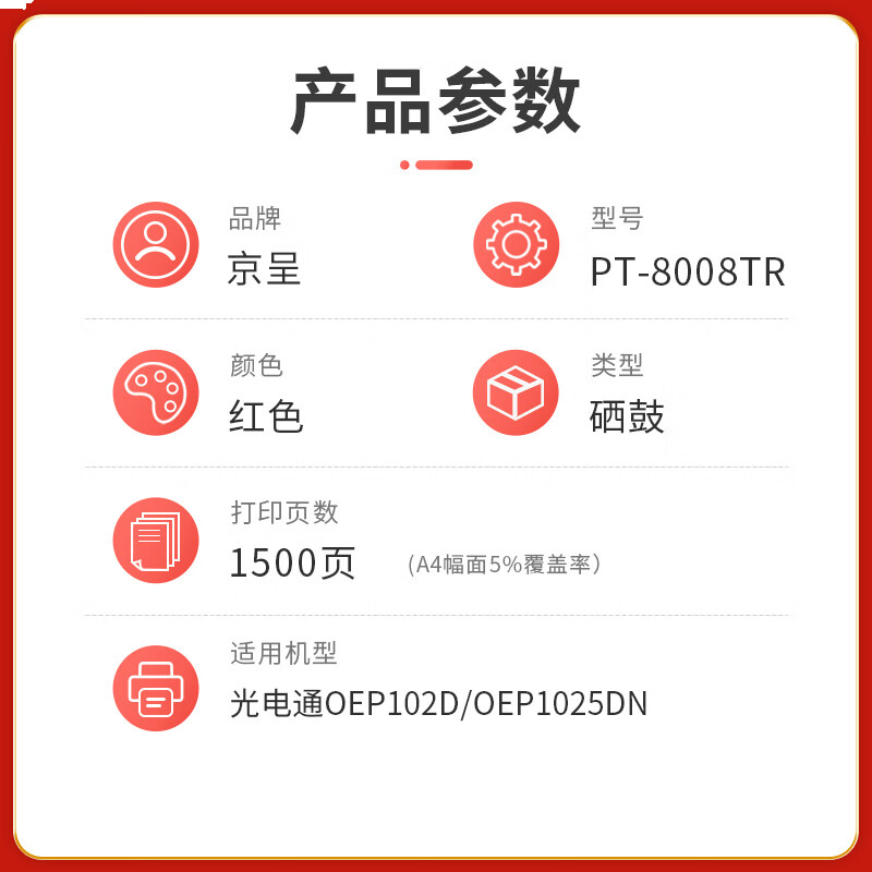 首页/ 京呈PLUS版 PT-8008TR 硒鼓 红色硒鼓 1500页/