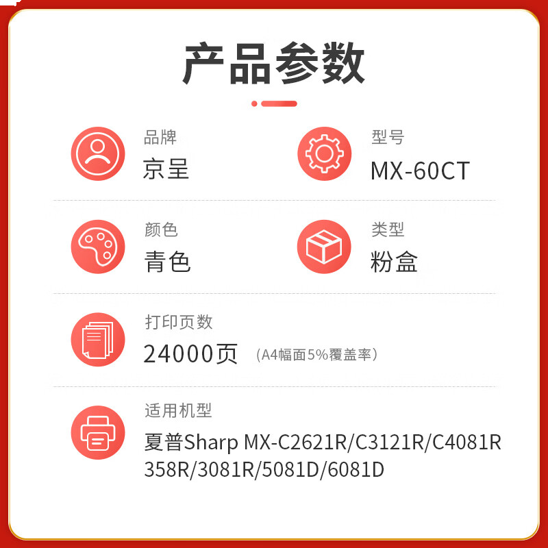 首页/ 京呈PLUS版 MX-60CT 硒鼓 大容量青色粉盒【24000页】/