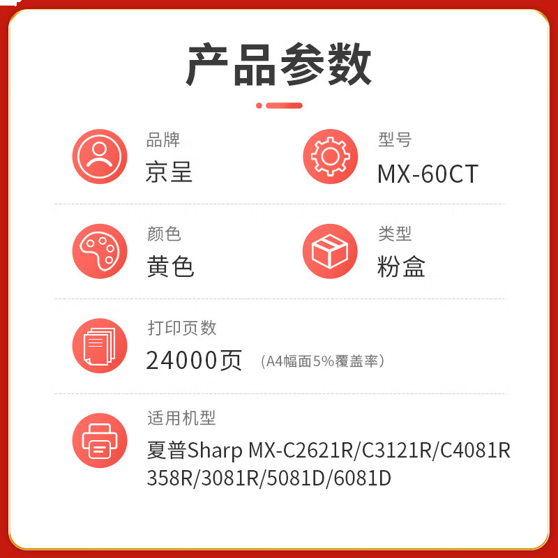 首页/ 京呈PLUS版 MX-60CT 硒鼓 大容量黄色粉盒【24000页】/