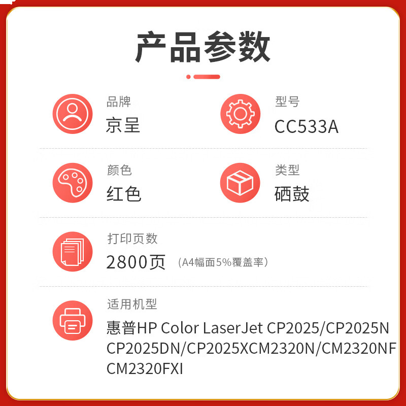 首页/ 京呈PLUS版 CC533A 硒鼓 【2800页】CC533A红色硒鼓/