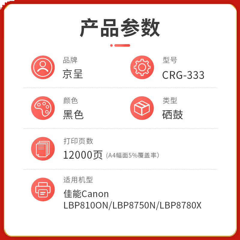 首页/ 京呈PLUS版 CRG-333 硒鼓 【12000页】CRG-333 黑色硒鼓 1支/