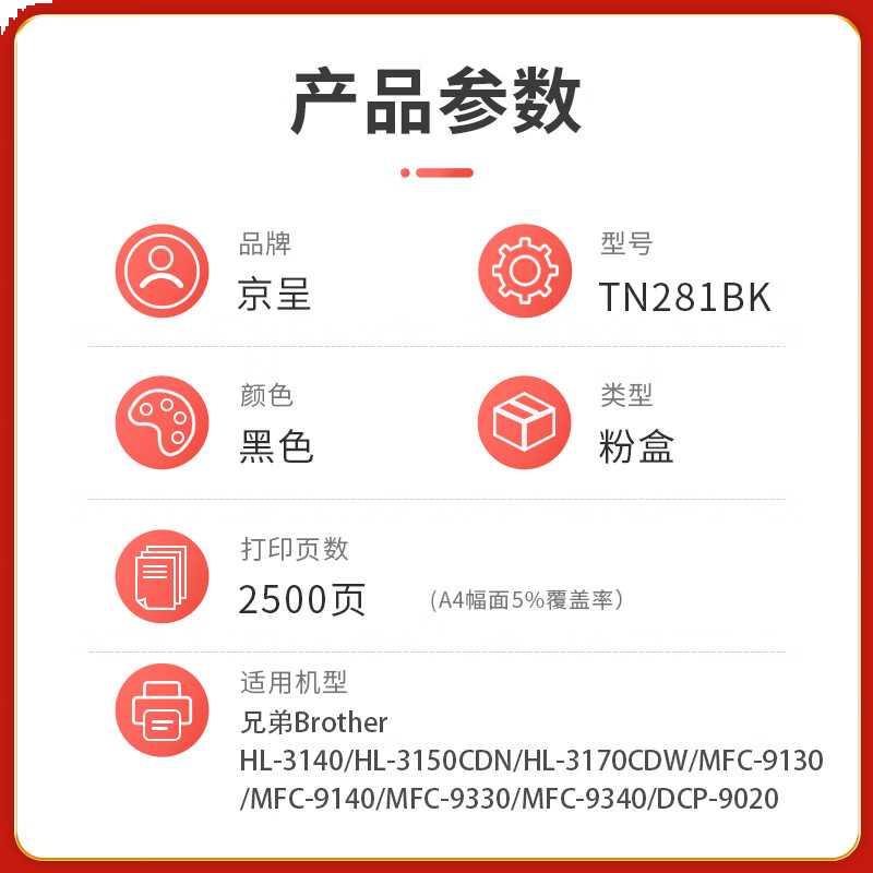 京呈PLUS版 TN281BK 硒鼓 【2500页】TN281BK黑色粉盒