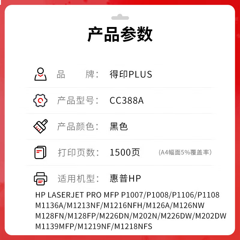 得印PLUS版 CC388A 硒鼓 【标准1500页】易加粉标准单支装