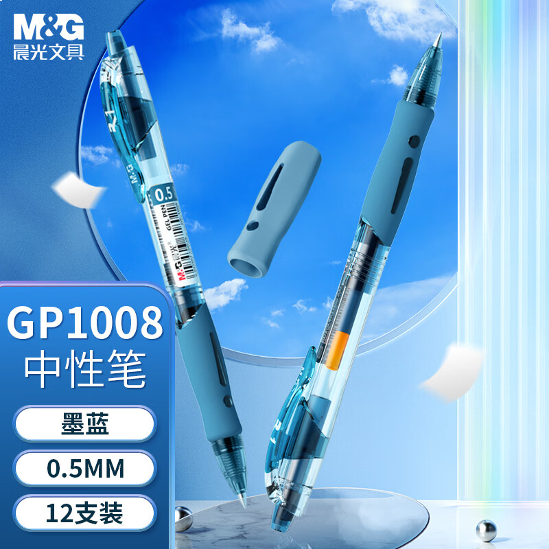 首页/ 晨光(M&G)文具GP1008 按动中性笔学生0.5签字笔商务子弹头水笔医生处方笔 墨蓝 12支/盒/