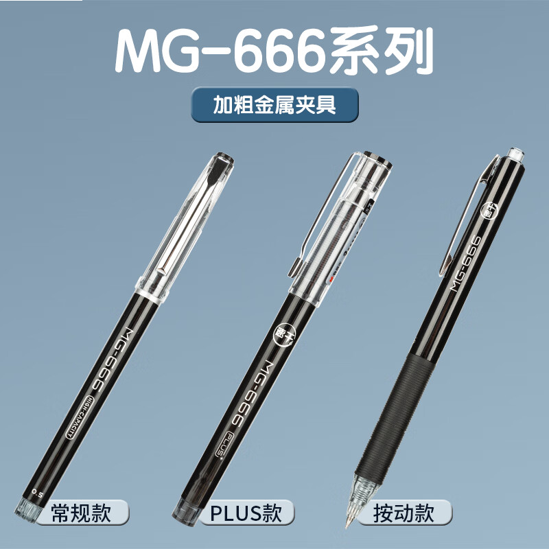 首页/ 晨光(M&G)文具黑色中性笔0.5 拔盖全针管刷题签字笔 MG666系列12支/盒AGPB4501/