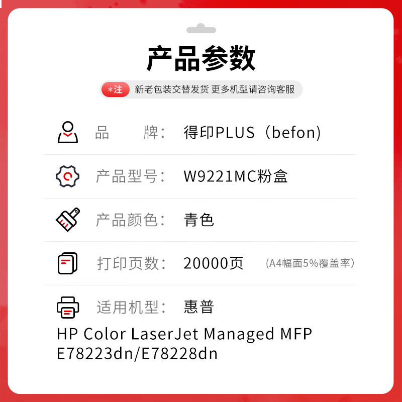 得印PLUS版 W9221MC 硒鼓 青色粉盒 20000页