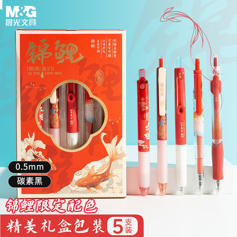 首页/ 晨光(M&G)文具锦鲤红礼盒 按动中性笔套装0.5高颜值开学礼物 黑笔5支/盒HAGP2408C/