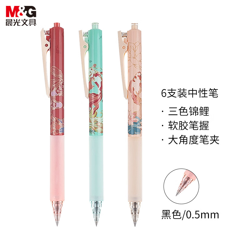 晨光(M&G)文具0.5mm黑色按动签字笔 国之色锦鲤系列 弹簧大笔夹设计 6支/盒AGPJ7110