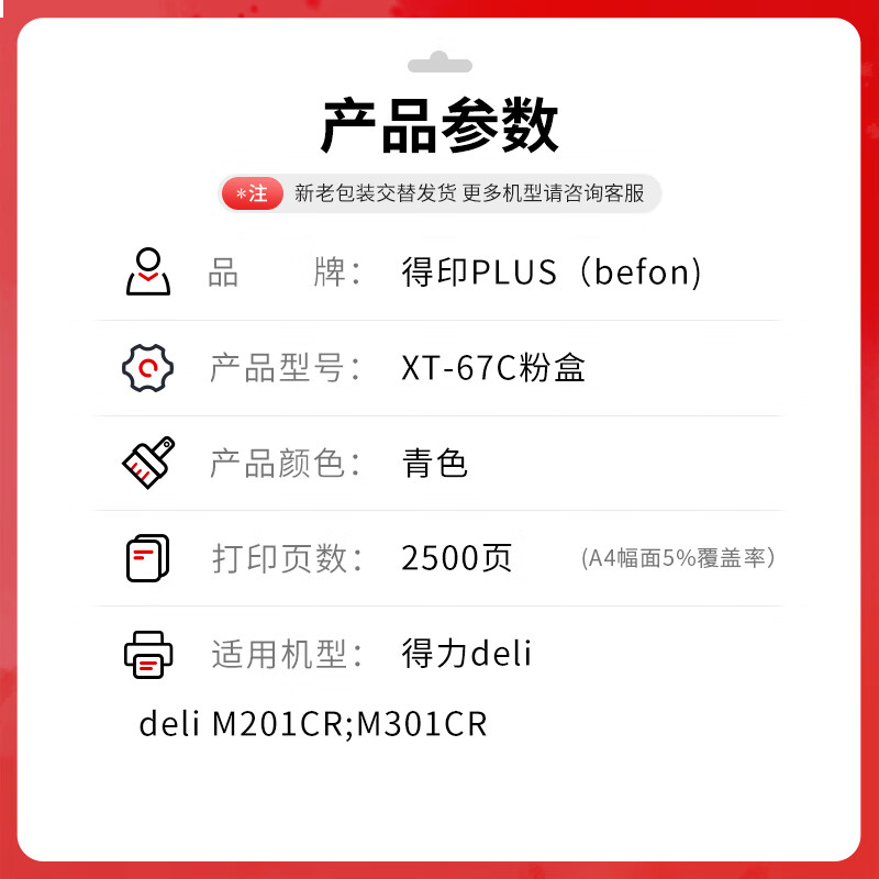 首页/ 得印PLUS版 XT-67C 硒鼓 标准青色粉盒 (2500页)/