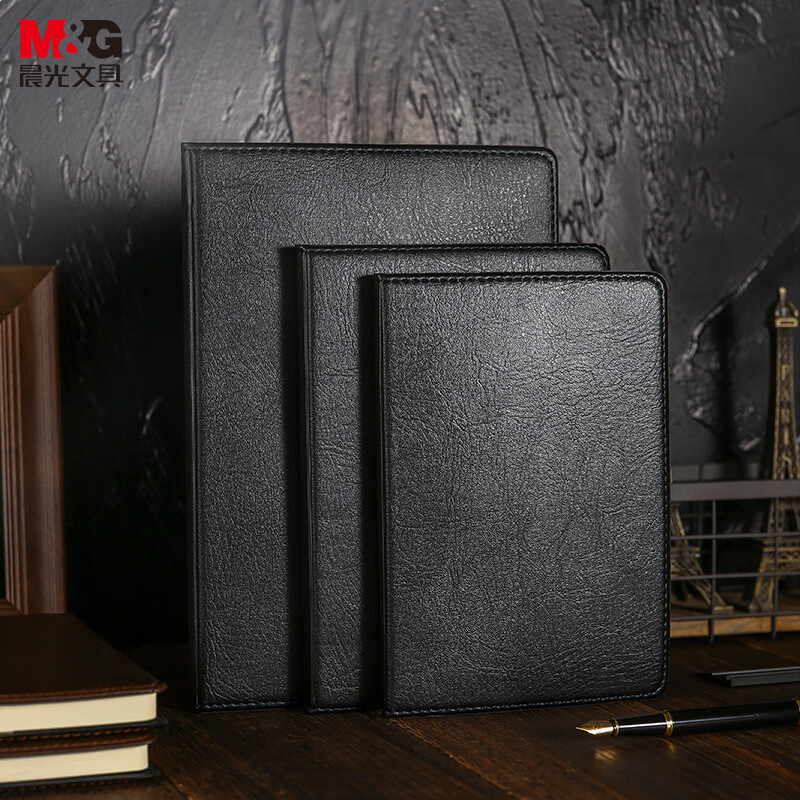 首页/ 晨光(M&G)文具黑色软皮革面笔记本日记本记事本商务25K/80张单本APYE4K78/