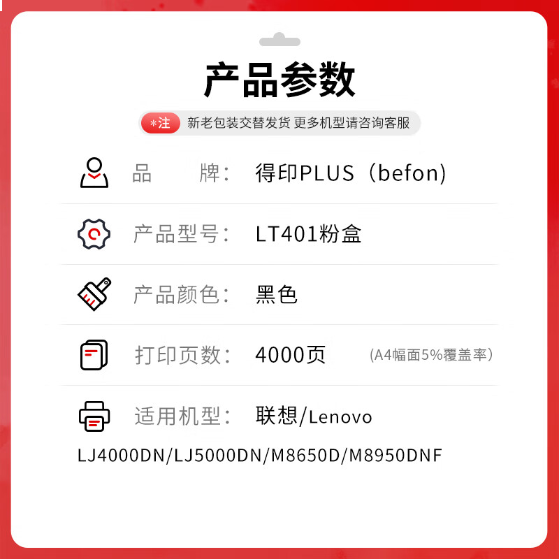 得印PLUS版 LT401 硒鼓 【4000页】LT401标准版易加粉粉盒 黑色 4000页