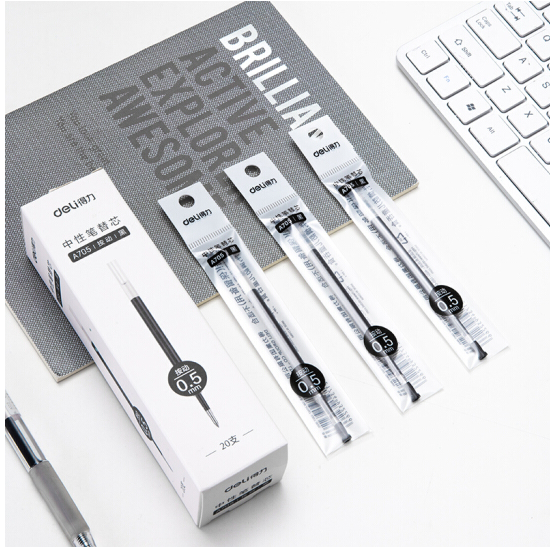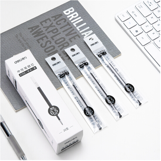 首页/ 得力(deli)按动中性笔替芯签字笔芯 学生办公按动笔芯 0.5mm子弹头20支/盒A705黑 /