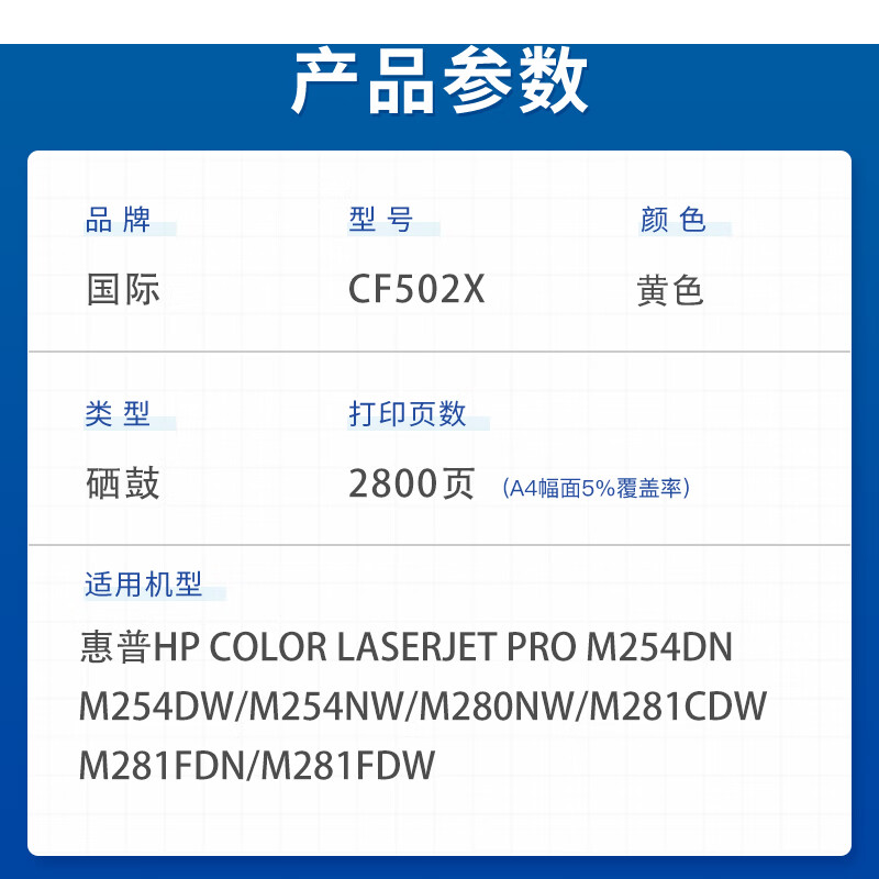 国际 CF502X 硒鼓 【大容量2800页】CF502X黄色硒鼓