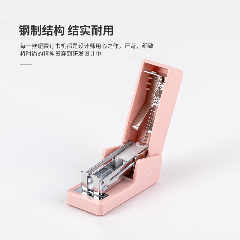 得力纽赛迷你小号订书机 轻巧便携手握式省力定书装订机 粉NS083附订书钉