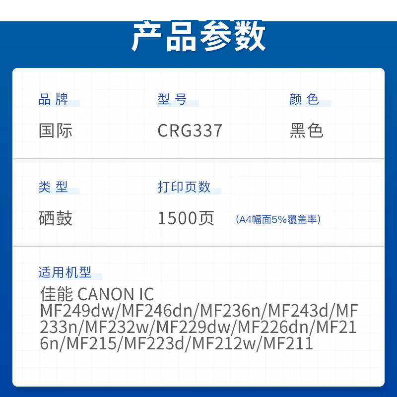 首页/ 国际 CRG337 硒鼓 易加粉黑色硒鼓/1支装【1500页】/
