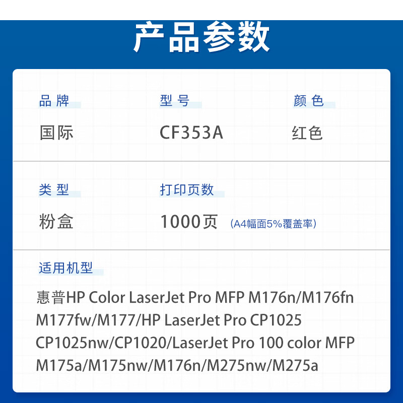 首页/ 国际 CF353A 硒鼓 红色 1000页/