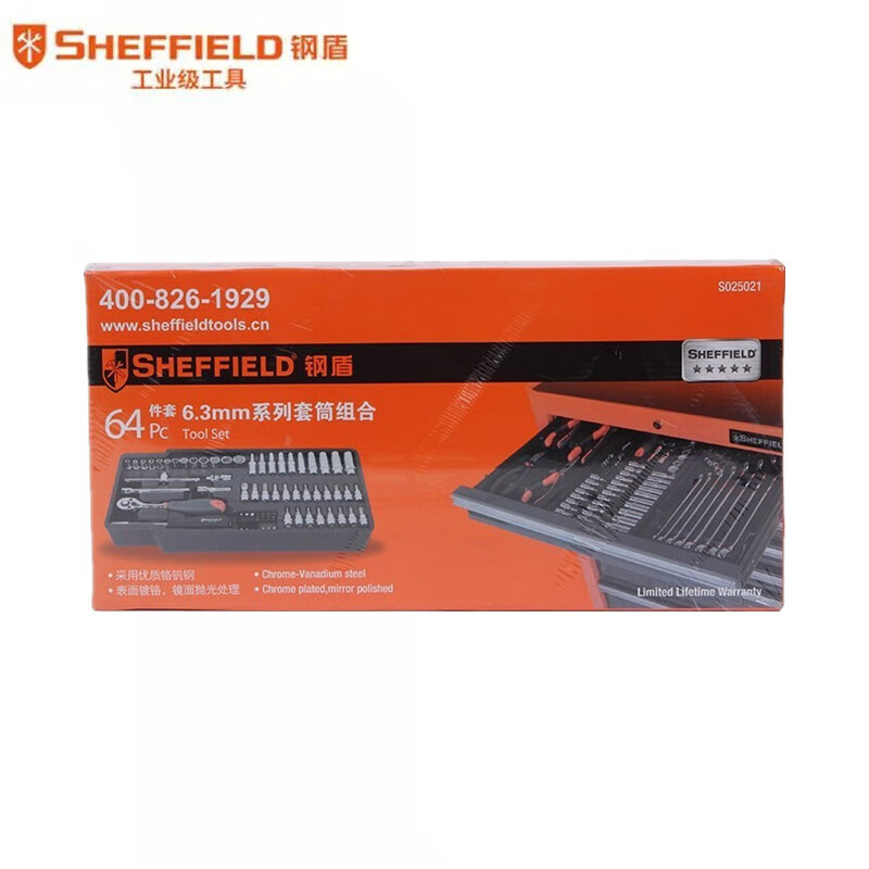 钢盾 SHEFFIELD S025021 64件套6.3mm系列套筒组合 棘轮套筒扳手套装汽修快速扳