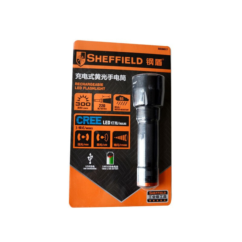 首页/ 钢盾 SHEFFIELD S030017便携式超亮充电式黄光手电筒 电工户外照明应急维修灯/
