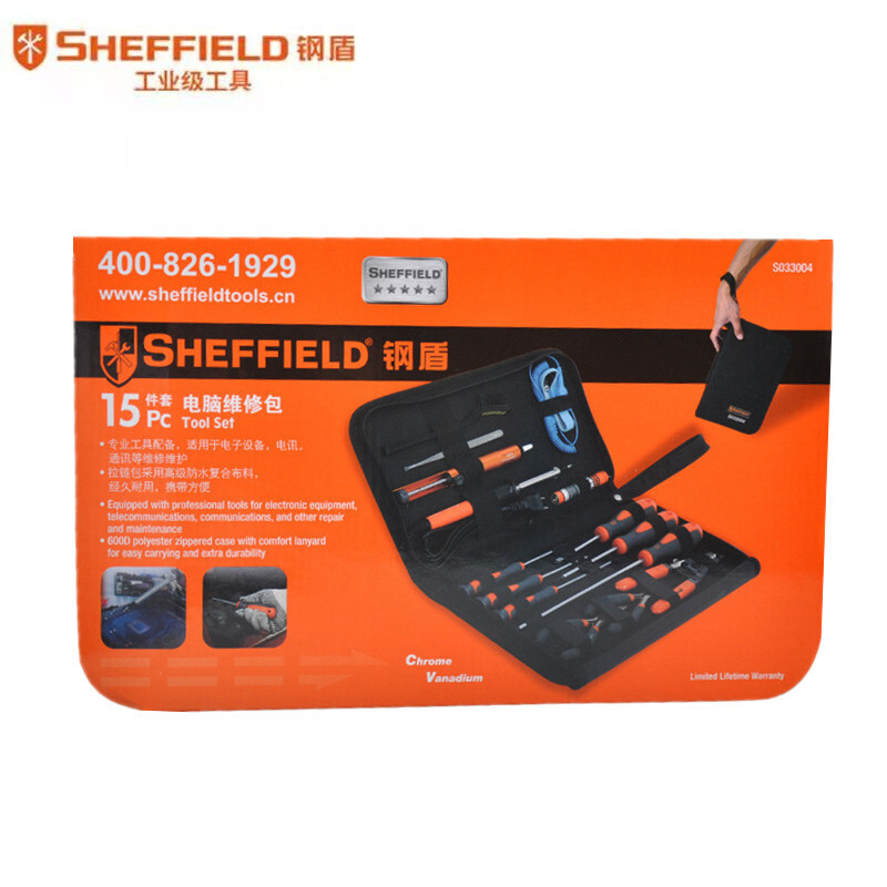 钢盾 SHEFFIELD S033004 15件套电讯维修工具 电工工具维修套装 15件电讯套装