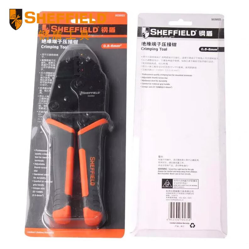 钢盾 SHEFFIELD S035022 绝缘端子压接钳 0.5-6m㎡ Y型O型端子压接钳